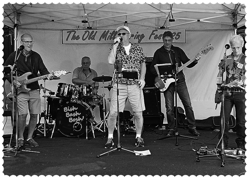 Bish Bash Bosh! formed as a five-piece band in 2023 and now have a repertoire of more than 80 well-know upbeat pop and rock songs. Known for lively performances, with audiences invariably up and dancing.
